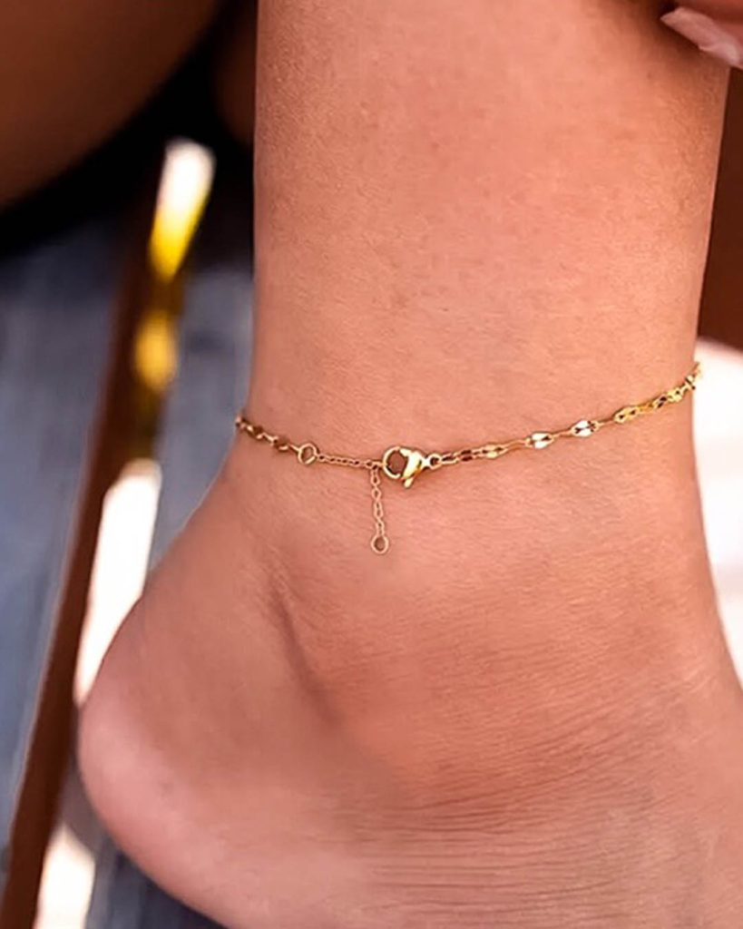 18K Gold Plated Stainless Steel Twinkling Ripple Lip Chain Anklets Gold