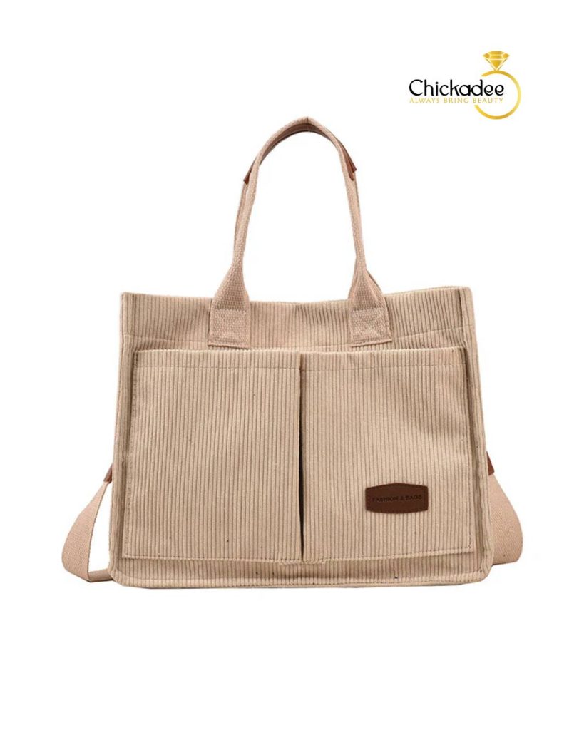 Corduroy Multi Pocket Canvas Crossbody Tote