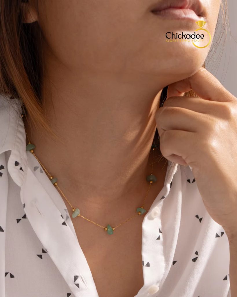 18K Gold Plated Stainless Steel Natural Gemstone Green Turquoise Necklace