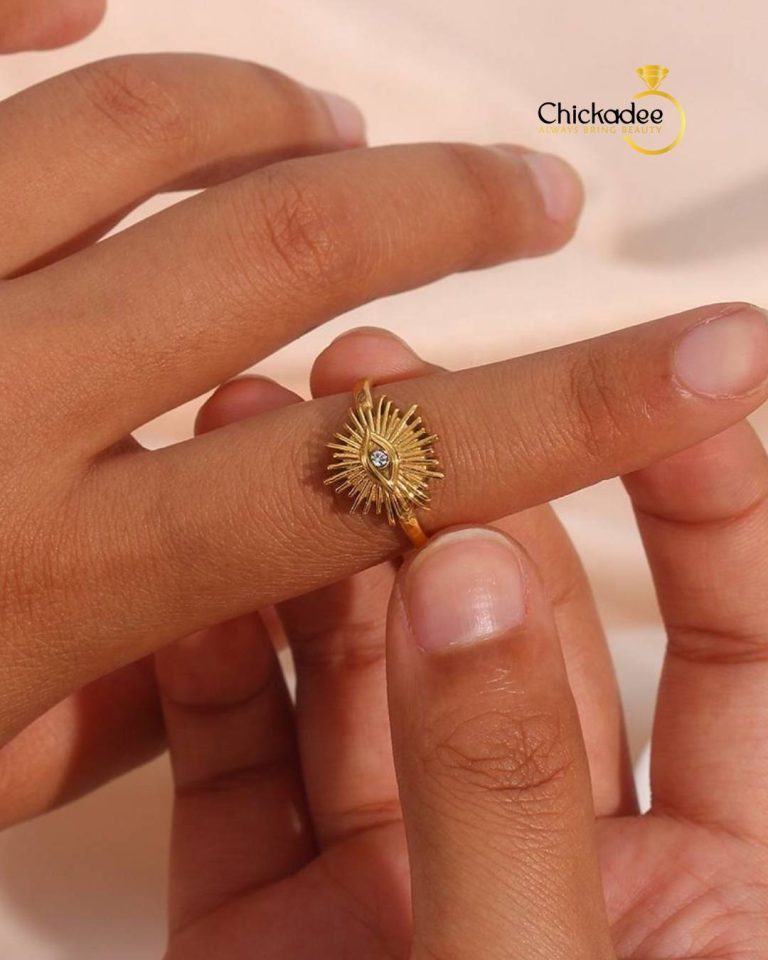 18k Gold Plated Stainless Steel Eye Shaped Zirconia Stainless Steel Finger Ring