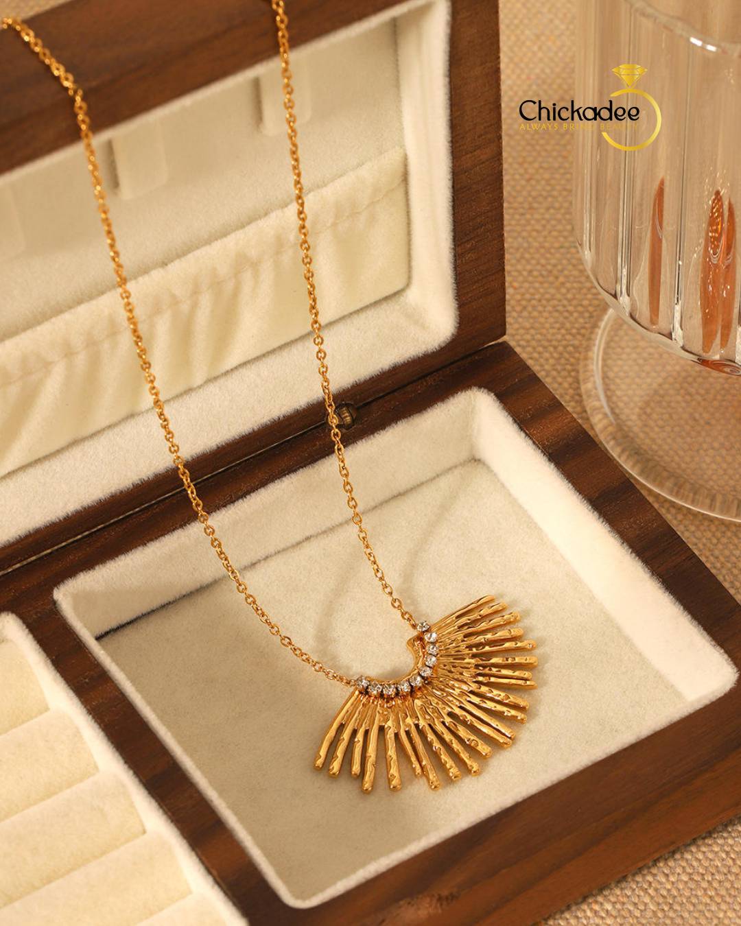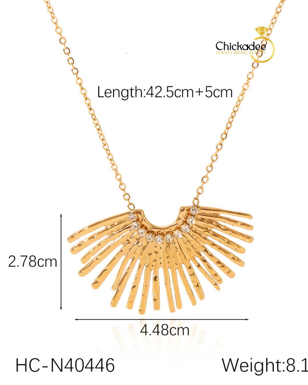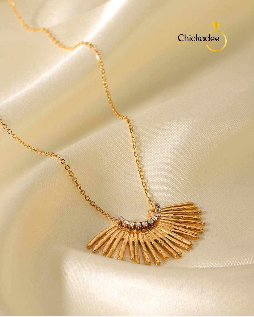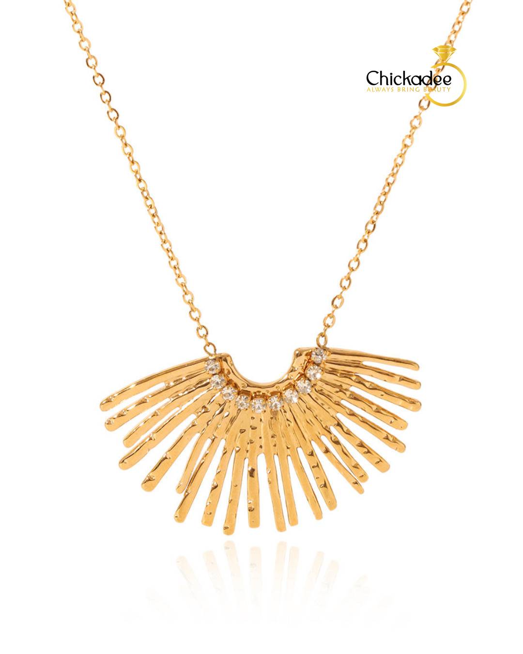 Ins Style 18K Gold Fan-Shaped Stainless Steel Diamond Pendant Necklace Geometric Multi Radial Lines Design Necklace