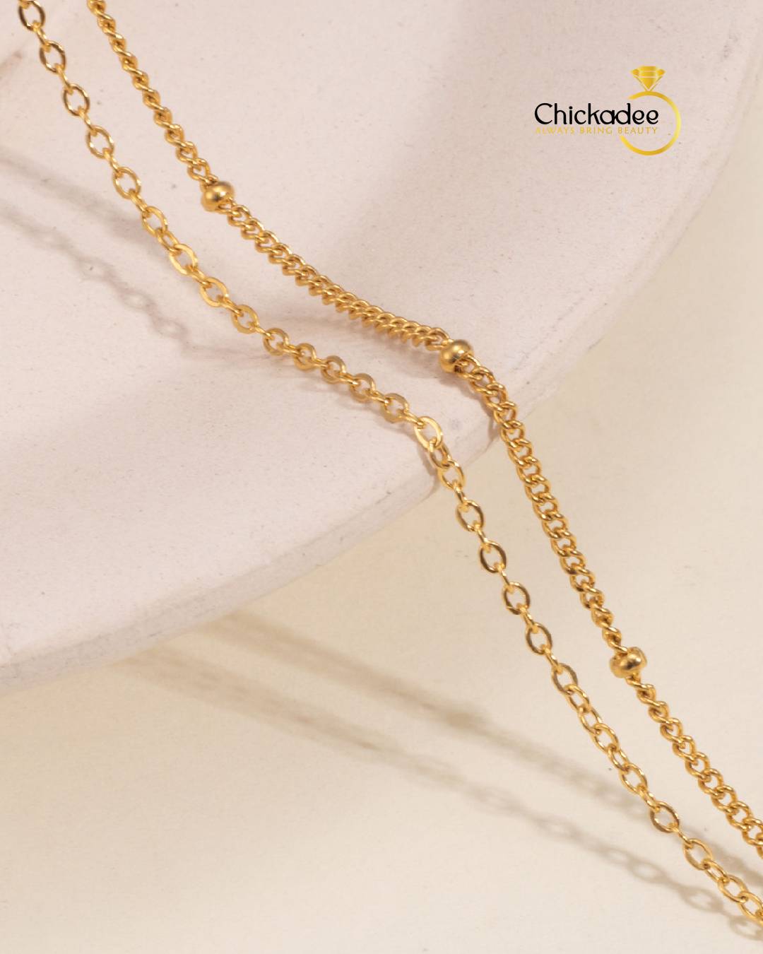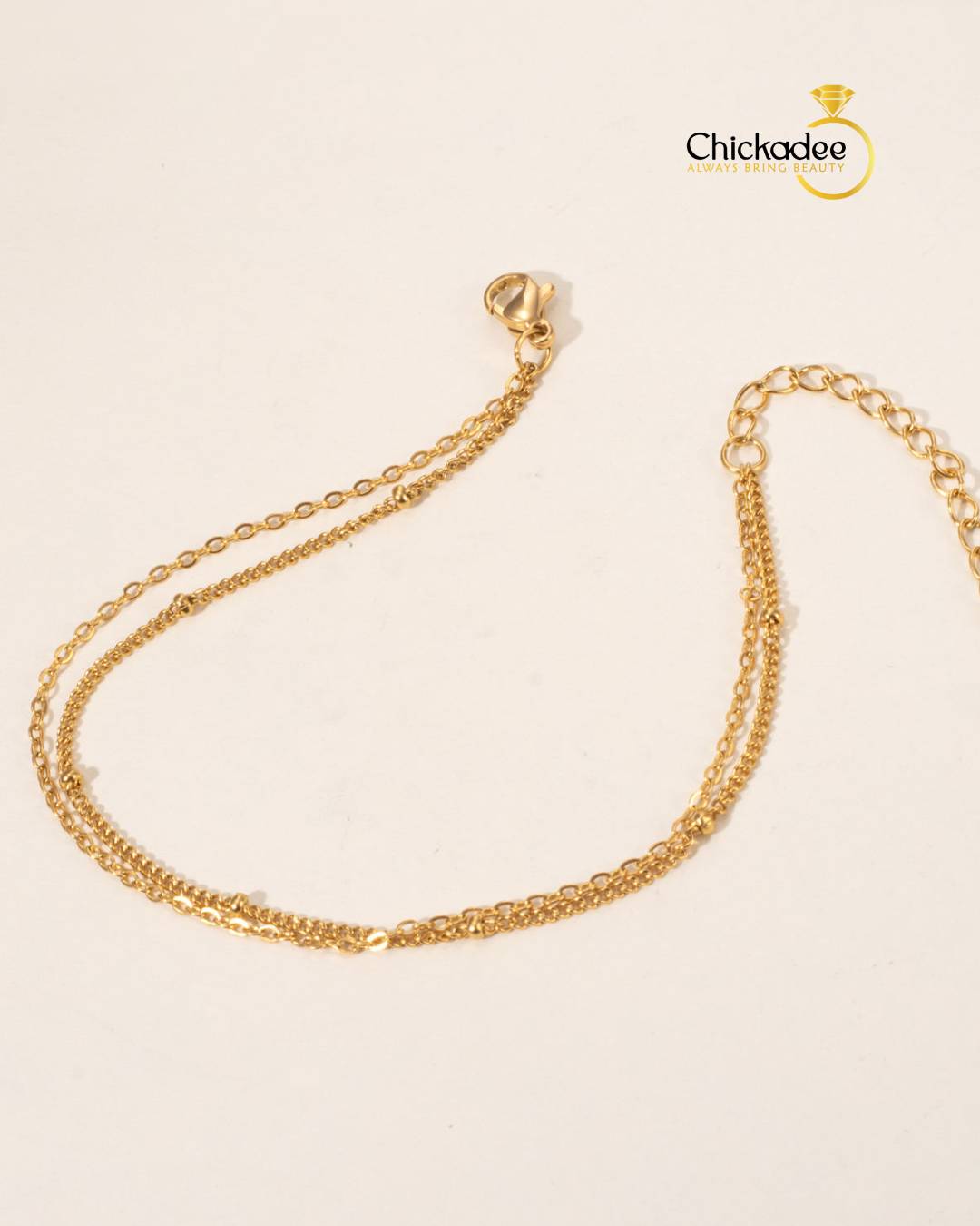 18K Gold Plated Stainless Steel Double Bead Chain Anklet