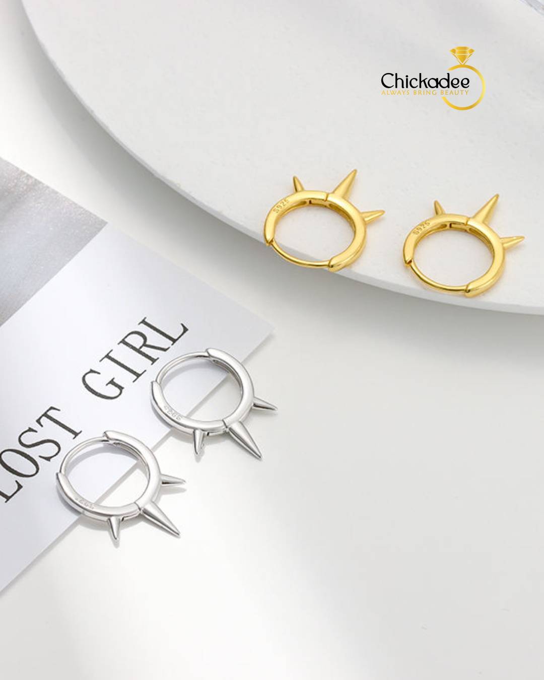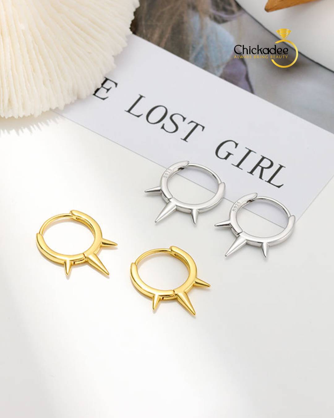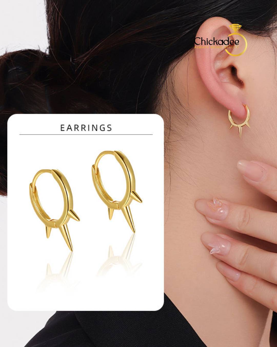 925 Sterling Silver Rivet Hoops Gold Plated Spike Huggies Earrings Set