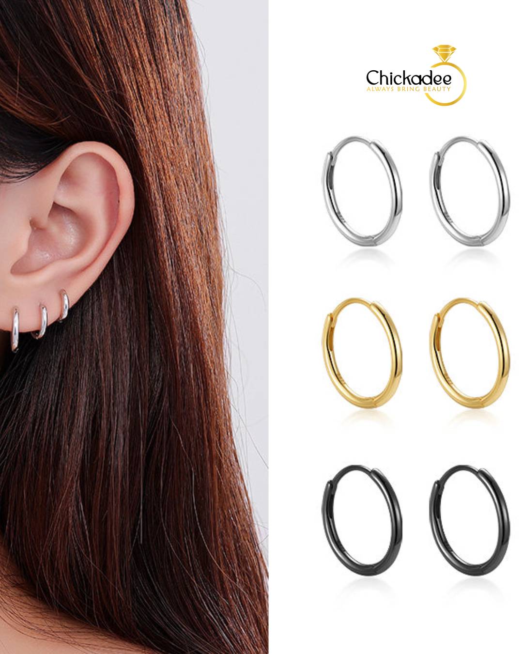 Hoops 925 Sterling Silver Smooth Round Earrings Huggies Fine Jewelry Gold Plated Vermeil Hypoallergenic for Women Girl