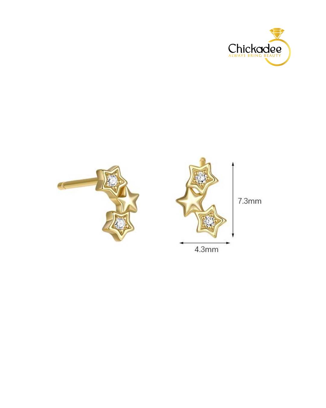 Dainty 925 Sterling Silver Star Stud Bezel CZ Cute Three Stars Earrings Set Fine Jewelry Gift for Women Mon Girl Wholesale