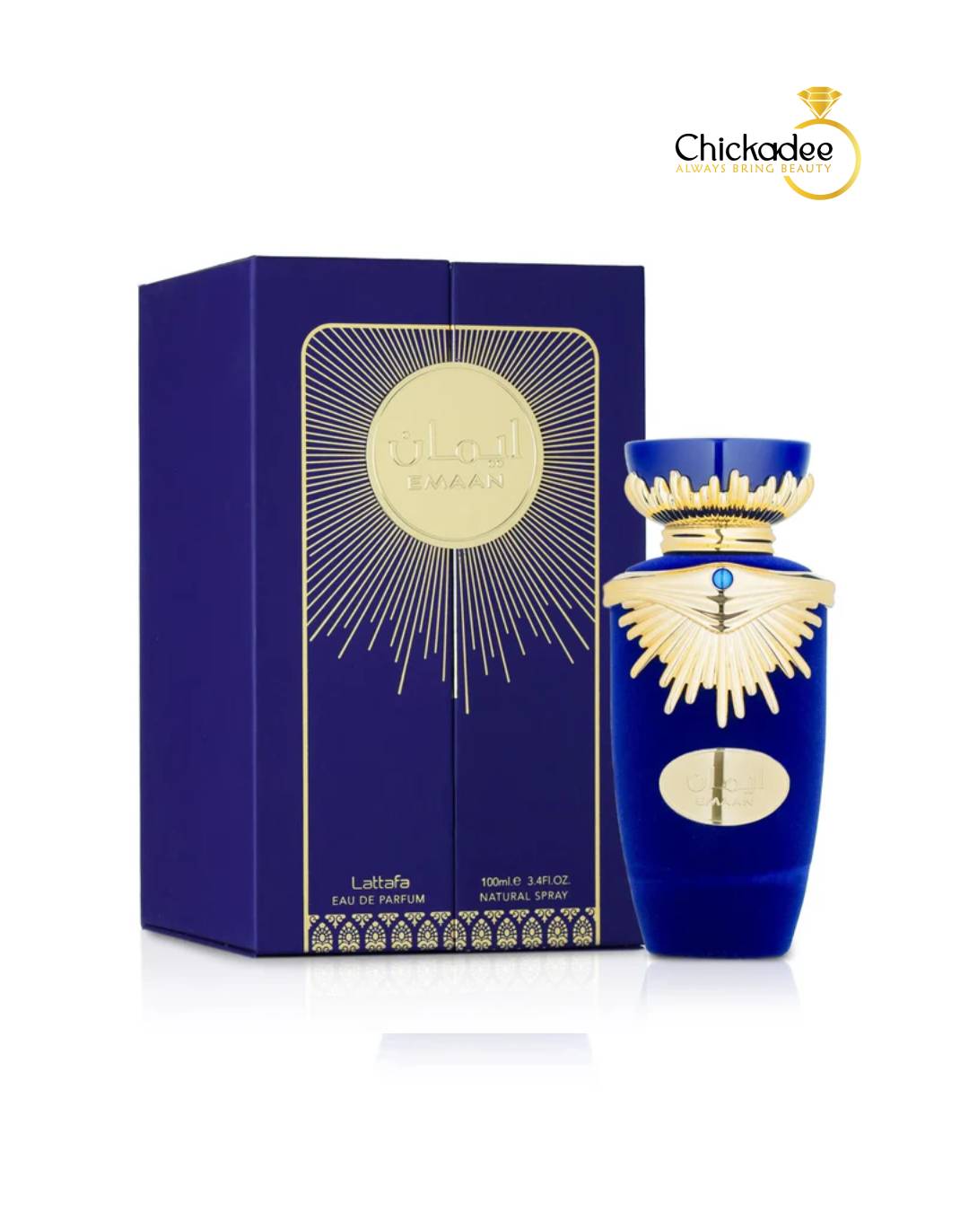 Emaan by Lattafa Perfumes is a Chypre Floral fragrance for women. This is a new fragrance. Emaan was launched in 2022. Top notes are Bergamot, Black Currant and Orange Blossom; middle notes are Tuberose, Jasmine and Marigold; base notes are Vanilla, Musk, Patchouli and Cedarwood.