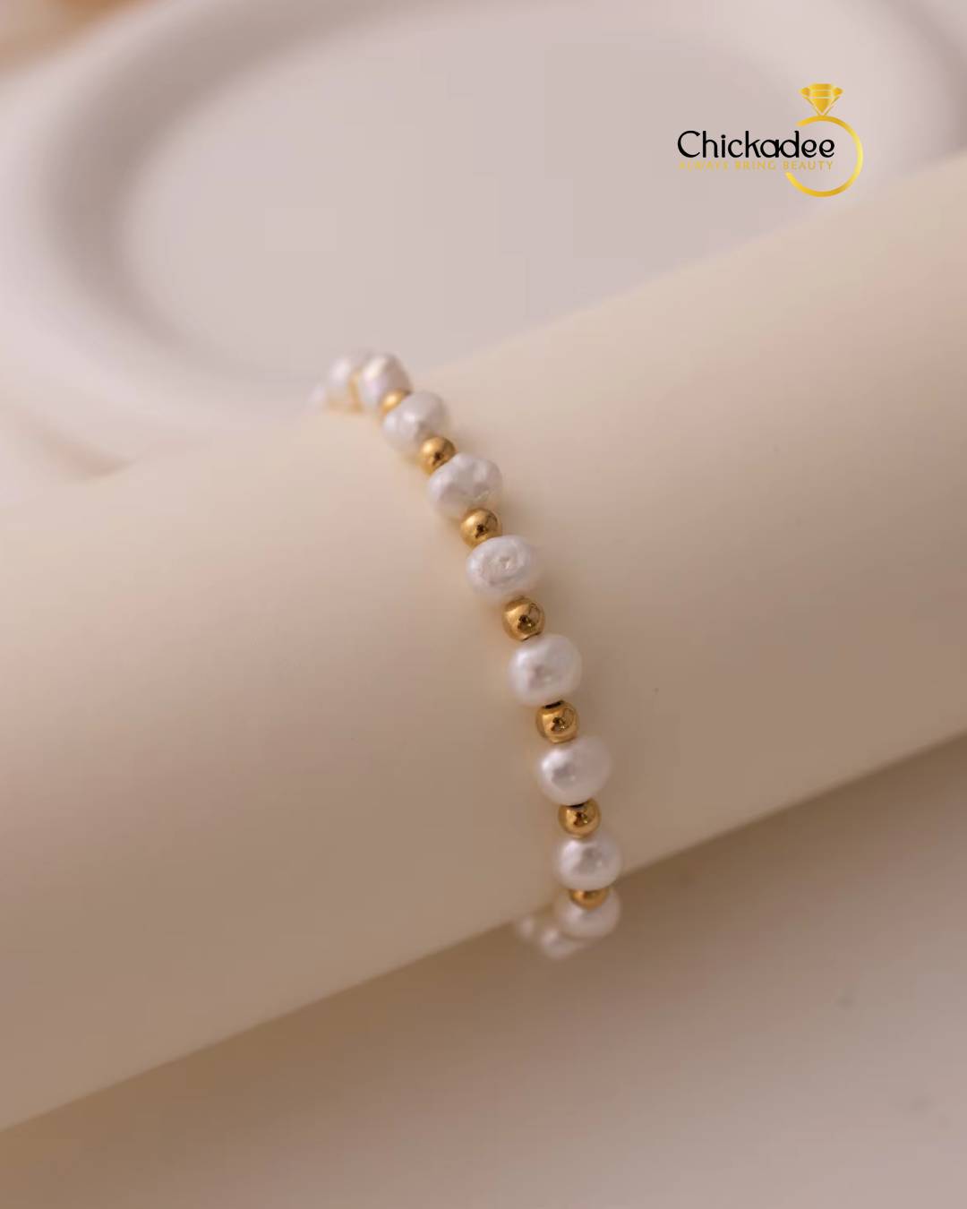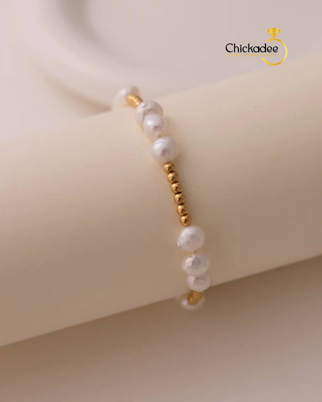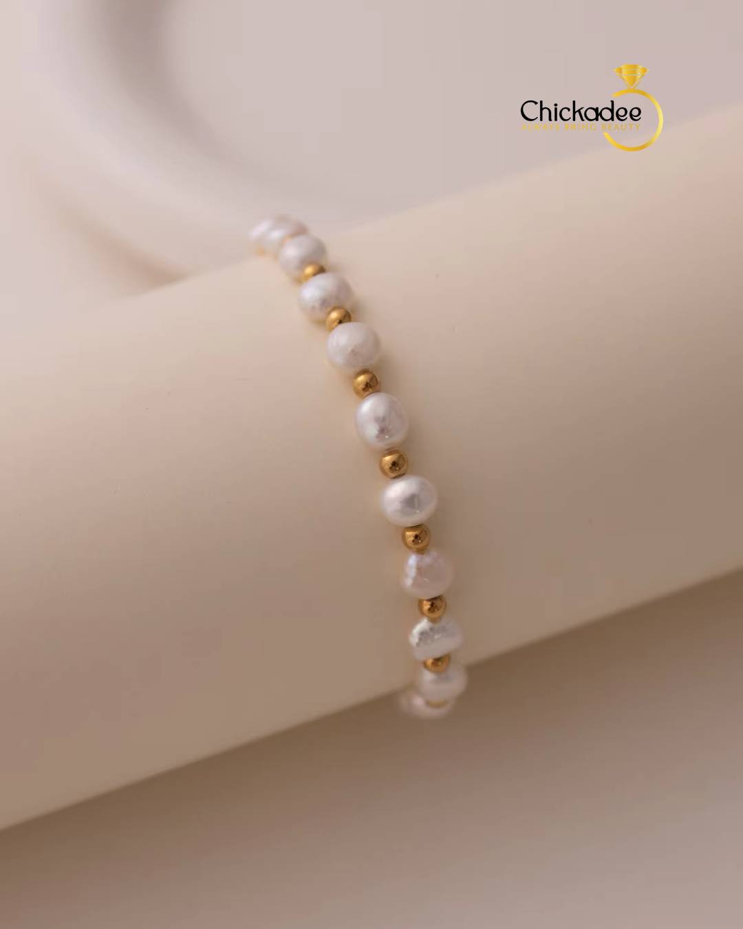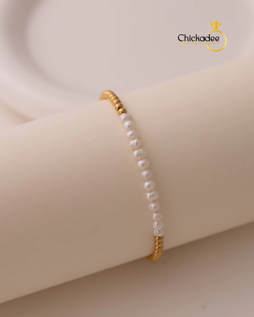 Dainty 18K Gold Plated Freshwater Pearl Stretch Bracelet Set Women Fashion Stainless Steel Beads Bracelets Waterproof Jewelry