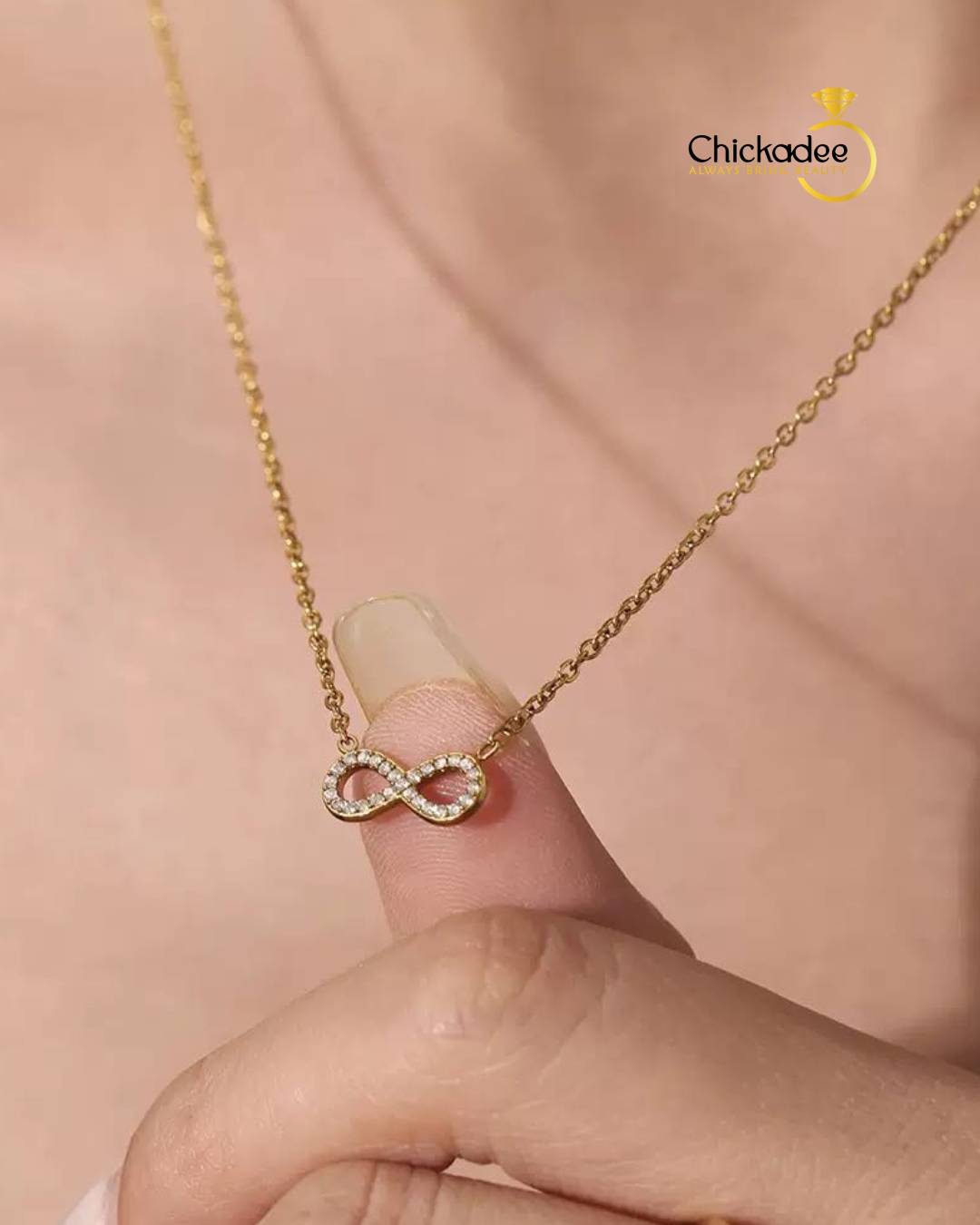 18K Gold Plated Stainless Steel Sparkle Zircon Love Heart Infinity Pendant Necklace for Women