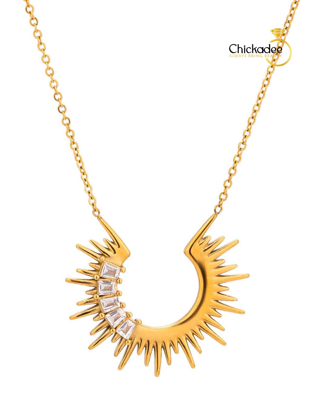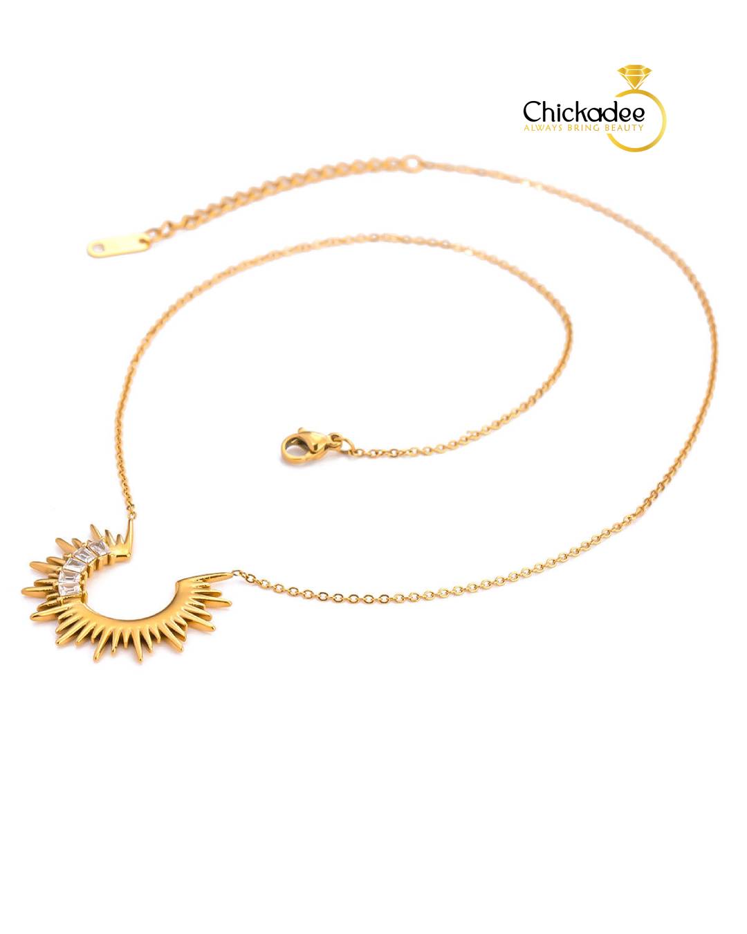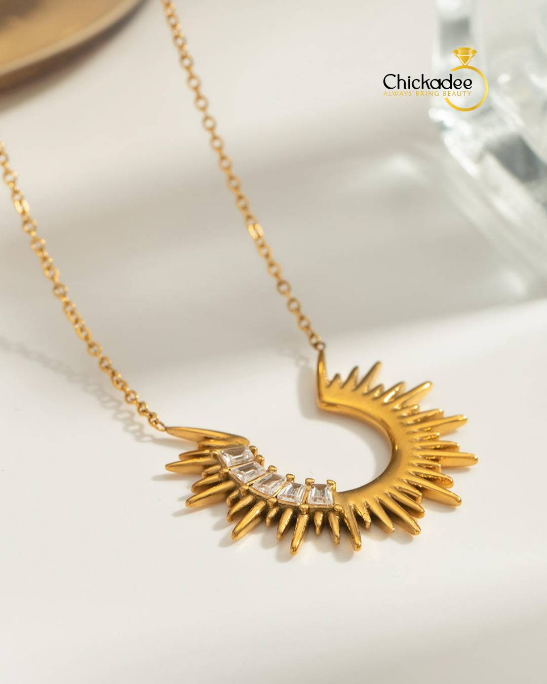 PVD 18k Gold Plated Stainless Steel Zircon Hollow Half Circle Pendant Necklace Jewelry Fashion Jewelry Zircon Sunflower Necklace