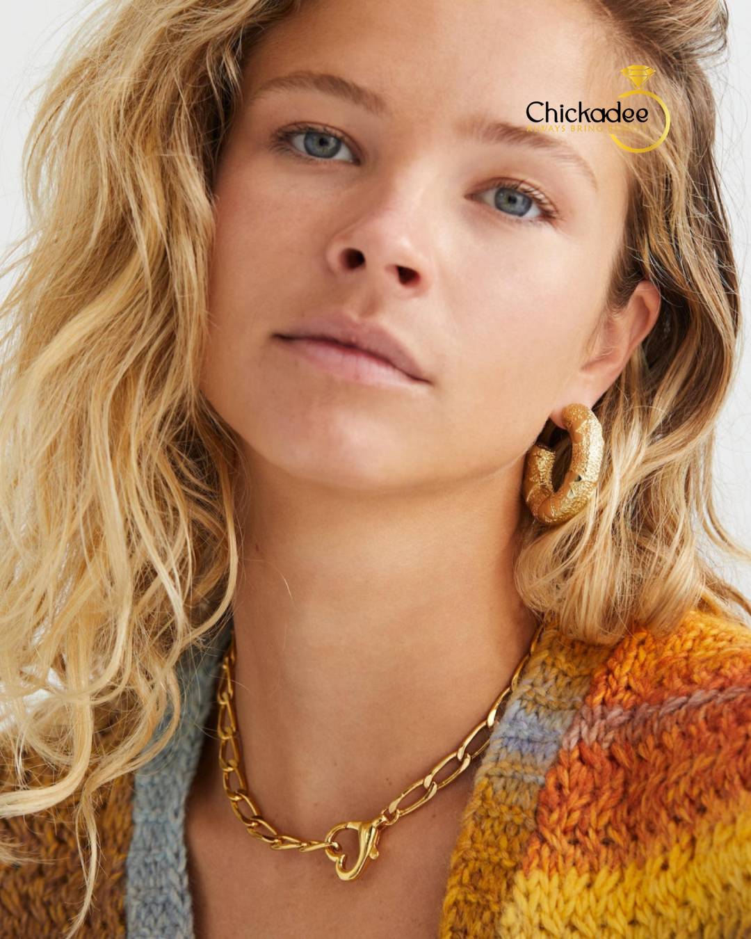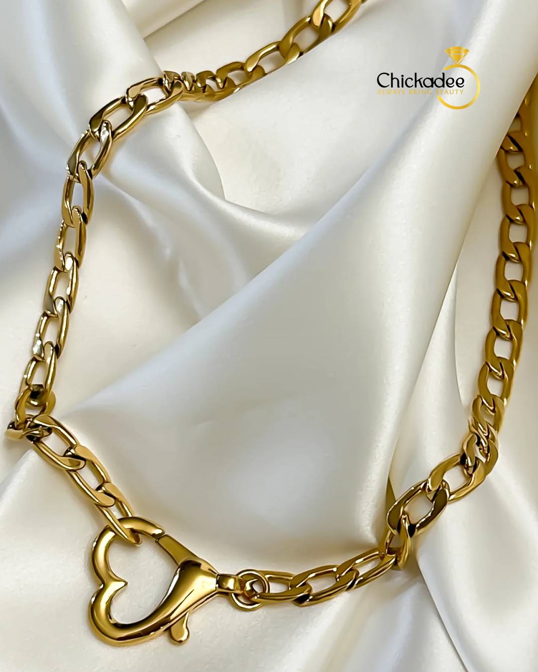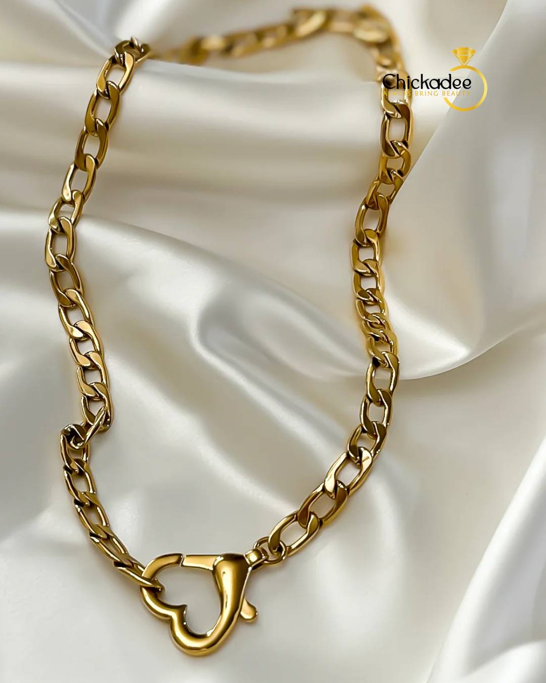 Valentine’s Day Fashion Jewelry-Statement Gold Link Chain Love Lock Necklace with Stainless Steel Heart Carabiner Choker