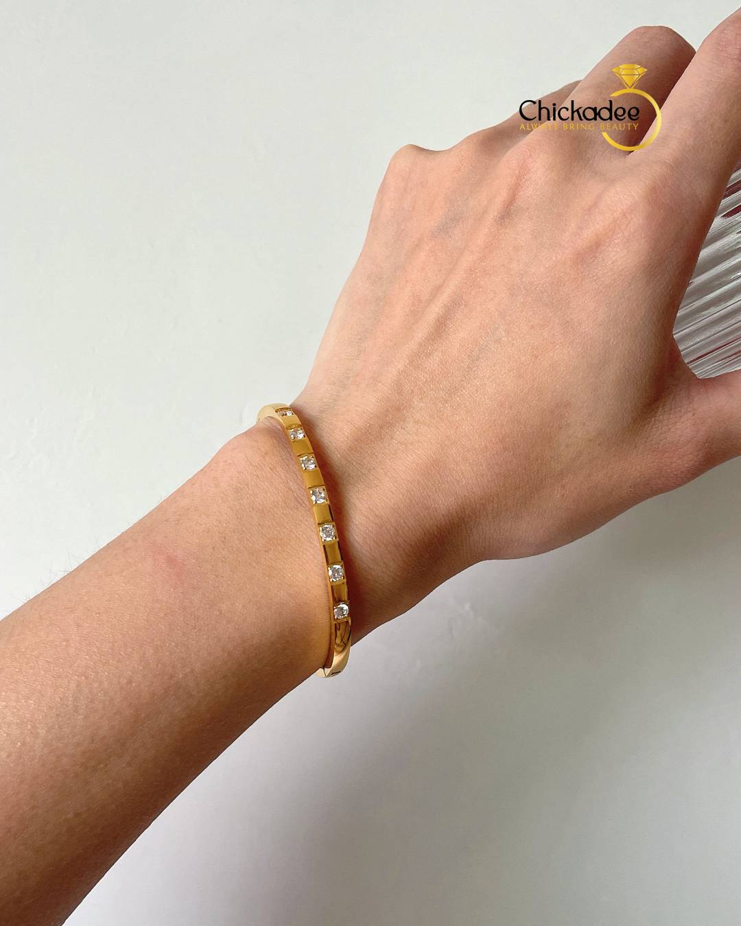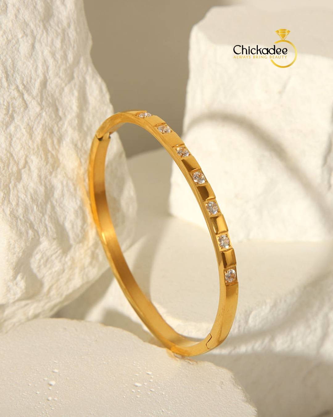 Minimalist 18K Gold Coated Stainless Steel Square CNC Claws Fixing White Cubic Zircon Cuff Bangles