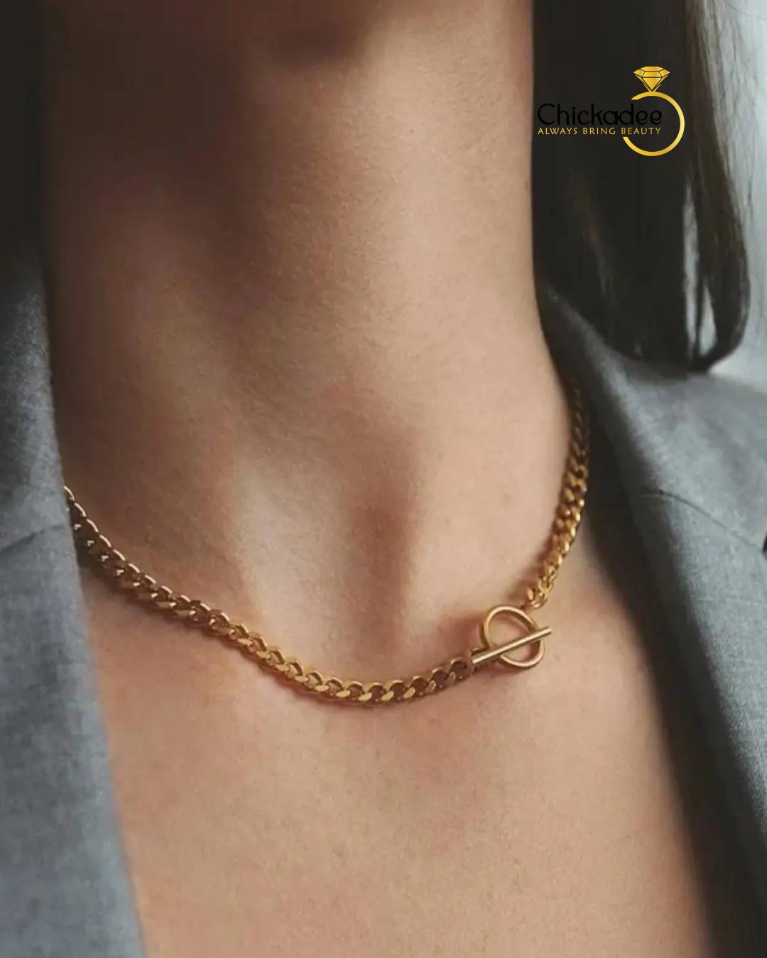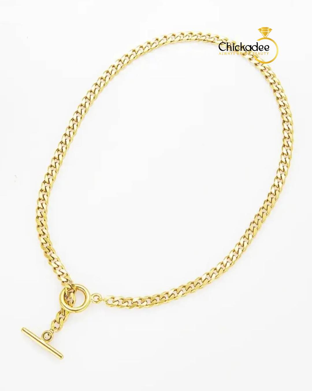 Chunky Chain for Women – Gold-Plated Link Chain – Statement Necklace with T-Clasp – Handmade Jewelry 18K Gold-Plated – Stainless Steel