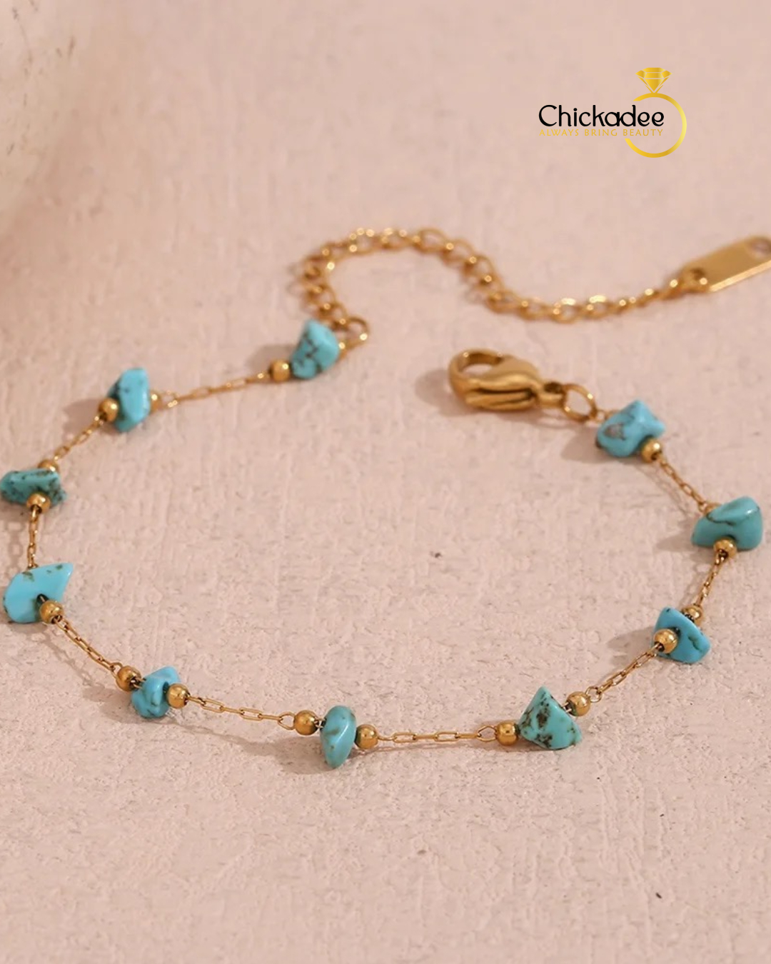 Turquoise Choker Gemstone Beaded Gold Plated Necklace Stainless Steel Jewelry Valentines Day Gift 2024